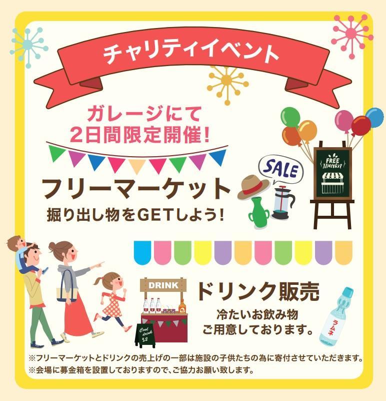 ※フリーマーケットとドリンクの売上げの一部は施設の子供たちの為に寄付させていただきます。