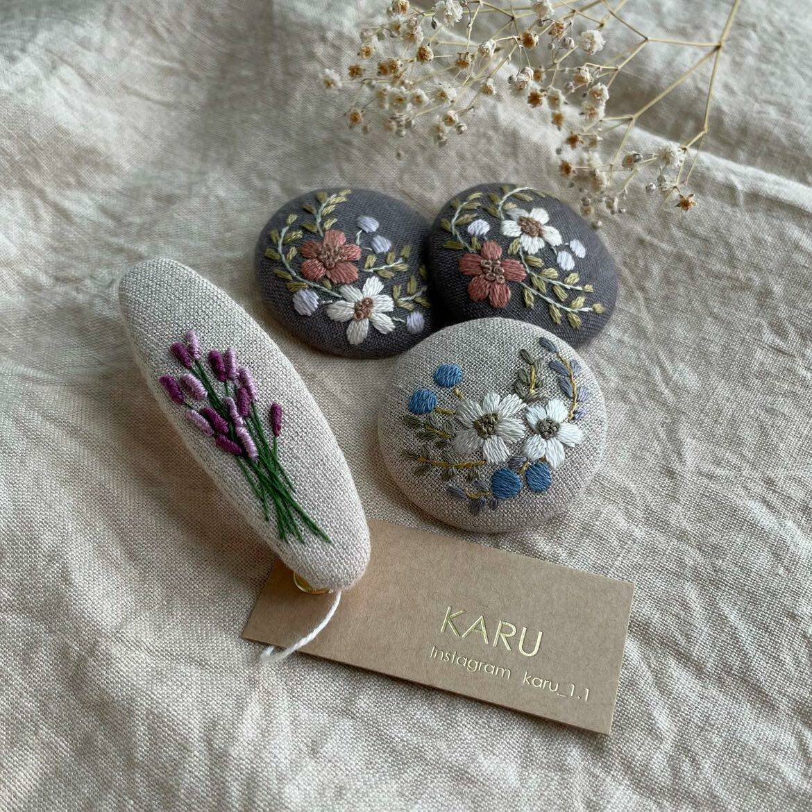 手縫いで仕上げたビーズ刺繍を中心に存在感のあるaccessory。
