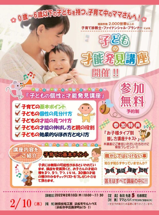 2,000世帯以上のお悩みを聞いてきた、ファイナンシャルプランナーであり「子育て診断士」の講師の先生 が才能発見のコツをレクチャー致します。