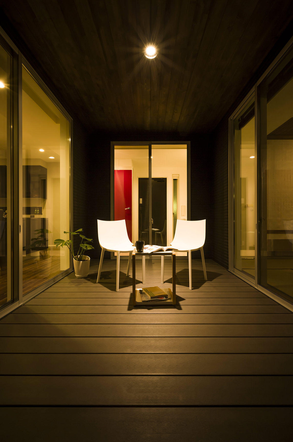 黒く角張った姿はさながら要塞のよう。交通量の多い幹線沿いに建っているので、家族とプライベートをがっちりと守ります。外部から見えない中庭が設けられており、光と風も気持ちよく入ります。