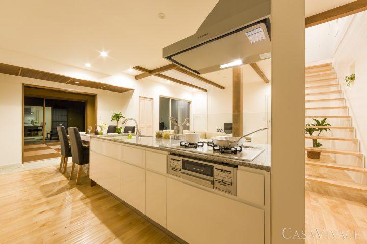 奥様想いのキッチンスペースと大理石のセカンドリビング